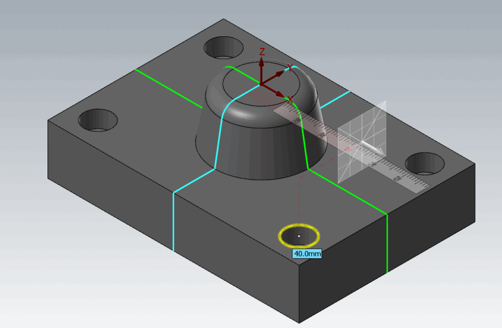 ソリッドの円エッジをクリックするときに、円の中心点と円の4分点がオートカーソルで認識できます。
